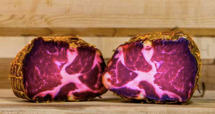 Ce capicollo est vieilli pendant 75 jours puis délicatement fumé, révélant une texture tendre et une richesse aromatique remarquable. Élaboré à partir d’échine de porc, il offre un bel équilibre entre gras fondant et viande savoureuse.