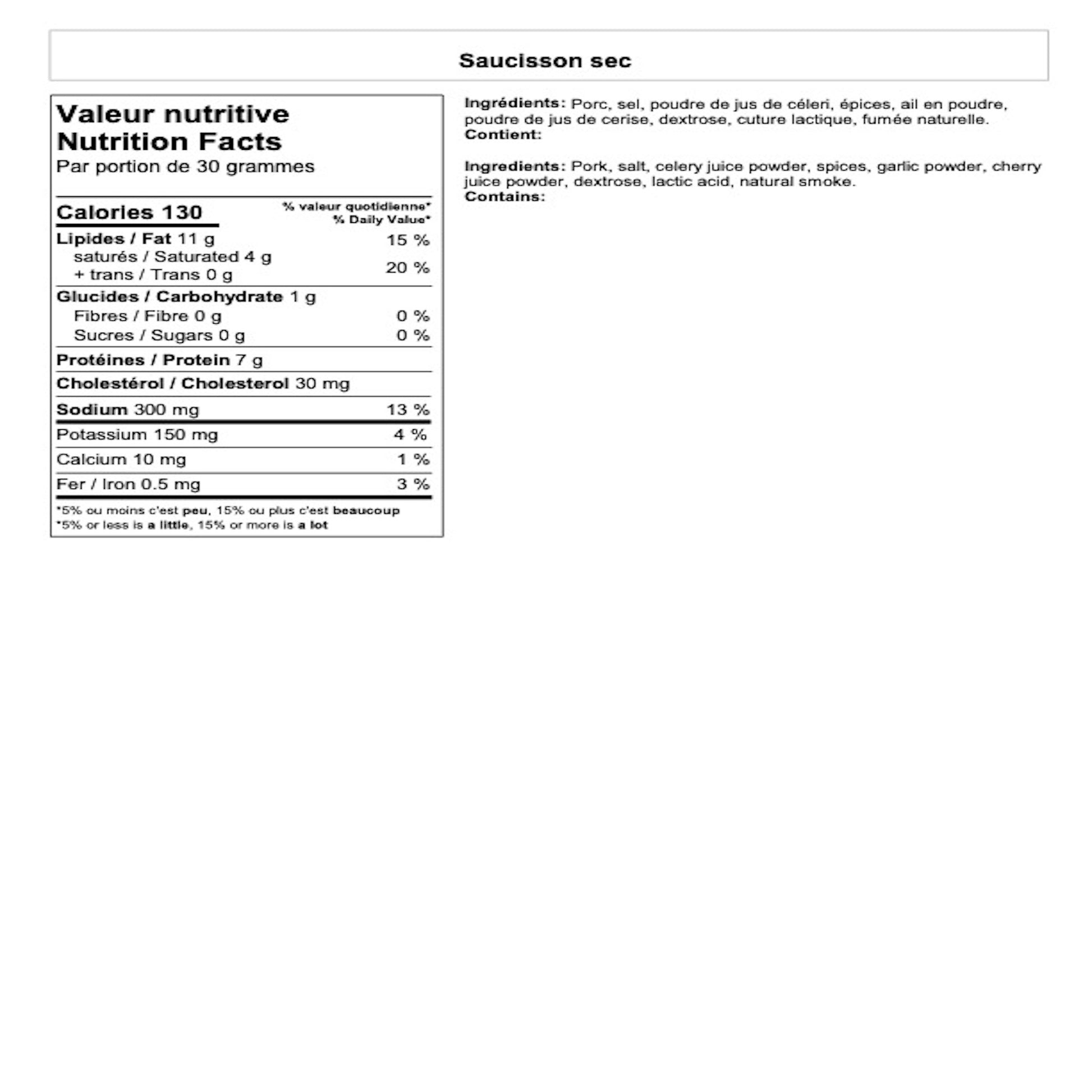 Saucisson Sec de Porc